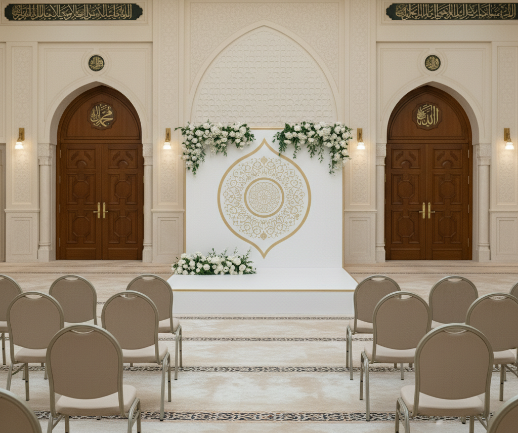 لو عايز تعقد قرانك في مكان راقي ومجهز بالكامل، خدمة دار المناسبات الإسلامية لعقد القران وكتب الكتاب من مأذونك هتوفرلك كل اللي تحتاجه في مكان واحد. قاعة مناسبة للأجواء العائلية، تجهيزات كاملة، وخصوصية تامة تناسب الطابع الإسلامي المحافظ. المكان مجهز لاستقبال الأهل والأصدقاء، مع تنسيق مثالي لجلسة المأذون وتوقيع العقد. الخدمة دي بتوفر عليك تكاليف إضافية وتنسيقات مرهقة، لأن كل التفاصيل جاهزة ومستنياك. لو بتدور على قاعة لعقد القران بأسعار مناسبة في مصر، إحنا بنقدملك حل عملي وسهل يخليك تركز في فرحتك بس. خلي كتب كتابك يتم في أجواء هادئة ومميزة تليق باللحظة.اضغط على زر تواصل معنا واحجز دار المناسبات الآن.